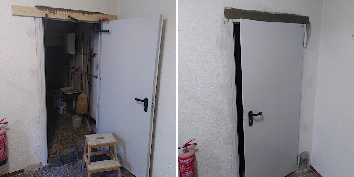Die Tür zur Abstellkammer wurde ebenfalls verspachtelt und die Wand wartet jetzt höchstens noch auf ein bisschen Farbe.
